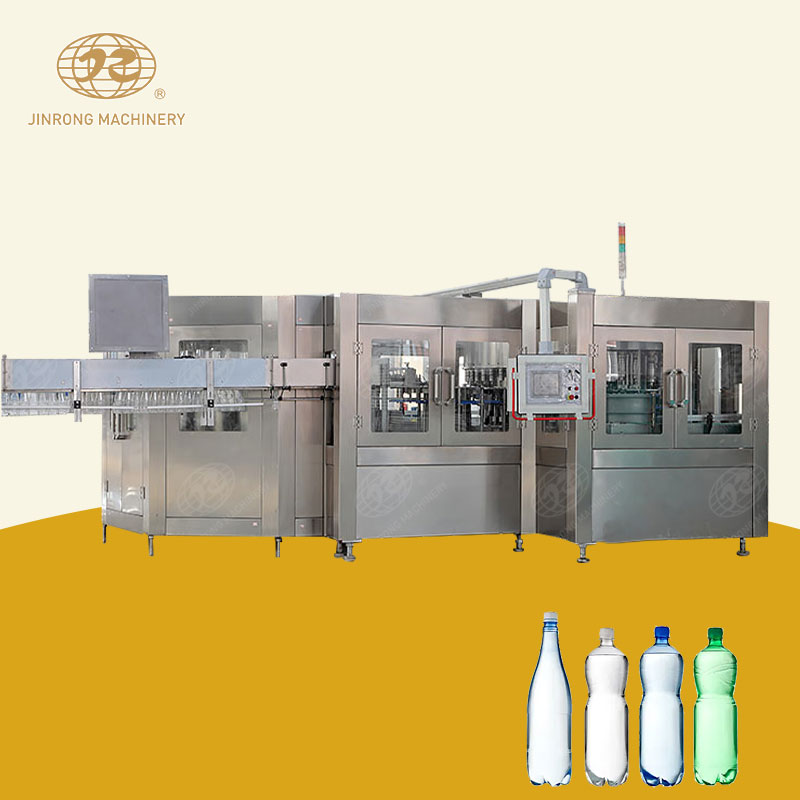 飲用水生產線廣泛應用于食品、飲料等行業,通過一系列的自動化操作,將原始水源經過處理、灌裝、密封等工藝步驟,最終生產出符合衛生標準的瓶裝飲用水。飲用水加工生產線的工作流程可以大致分為水處理系統、瓶洗凈系統、灌裝系統、封口系統和包裝系統等幾個主要部分。飲用水灌裝生產線集沖洗、灌裝、旋蓋于一體的全自動灌裝設備,適用于純凈水、礦泉水、飲用水等的灌裝生產。